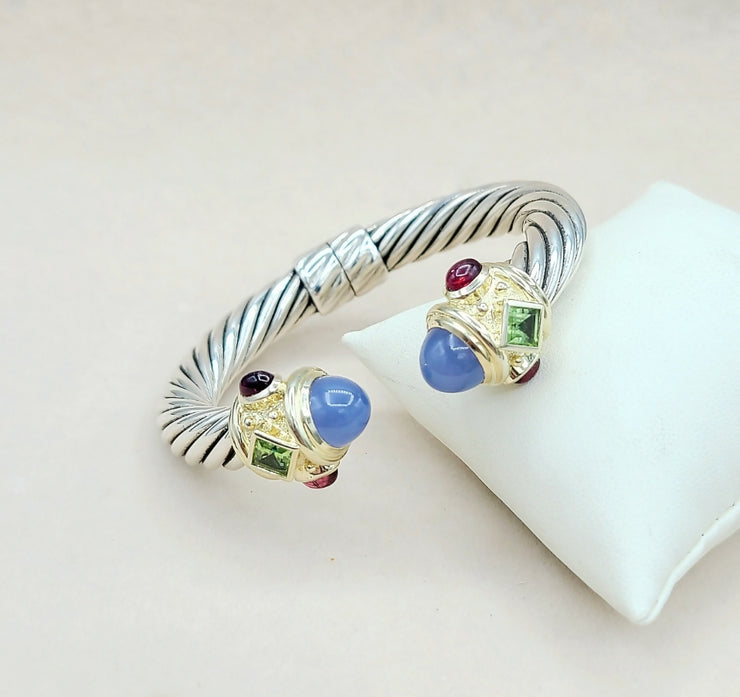 David Yurman 10mm Renaissance Bracelet With Chalcedony Peridot , Garnet And Gold