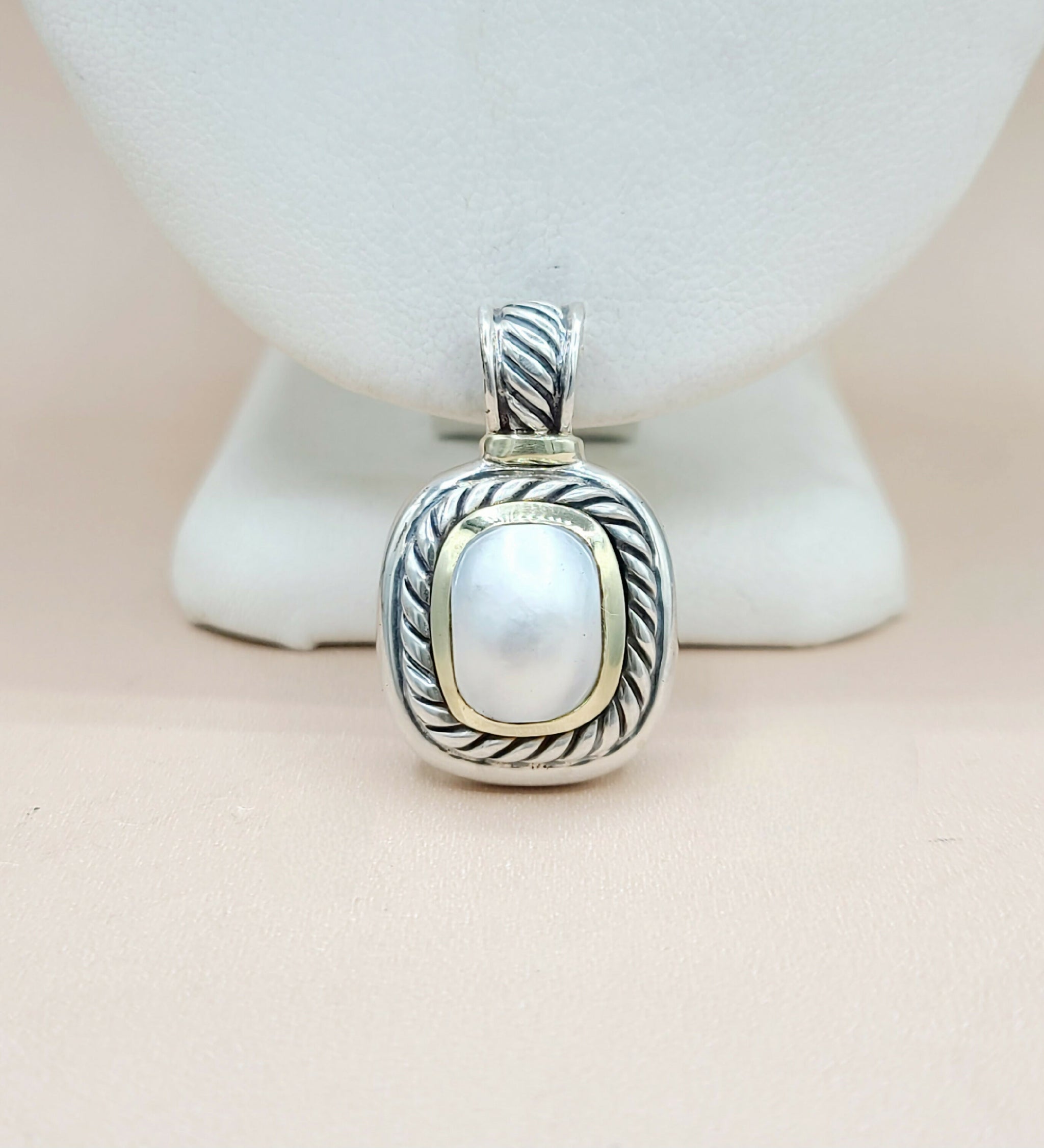 David Yurman Albion Pearl Pendant Enhancer Silver & 14k