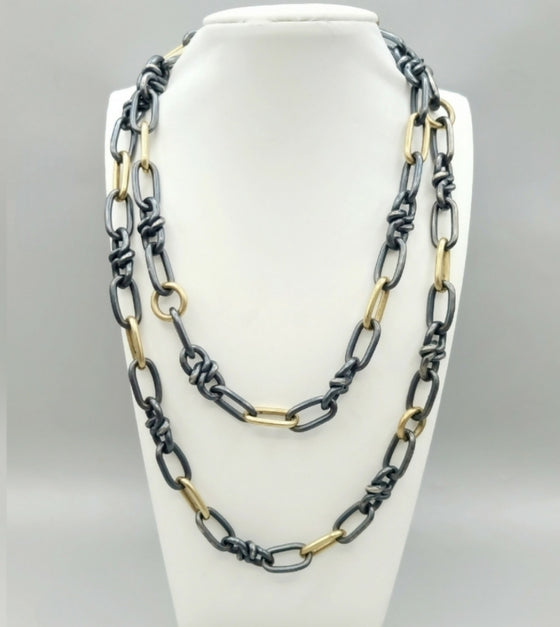 David Yurman Black And Gold Link Chain Necklace