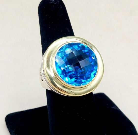 David Yurman Cerise Ring 18mm – Blue Topaz & Gold
