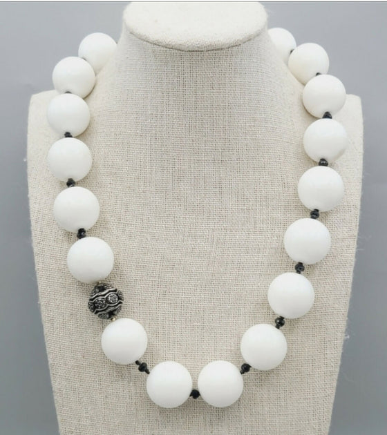 • Gemstones: Cabochon White Agate Beads (20 mm), Black Spinel Beads (4 mm), Pavé Black Diamond Bead (16 mm)