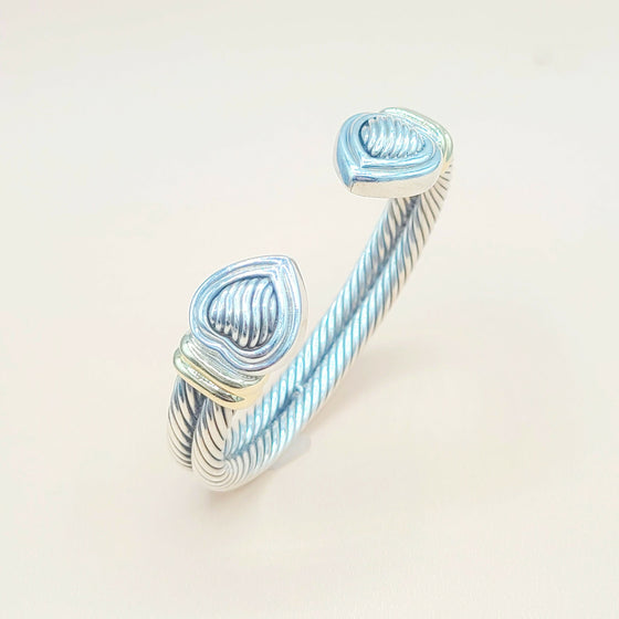 David Yurman Double Cable Sculpted Heart Silver Gold Bracelet