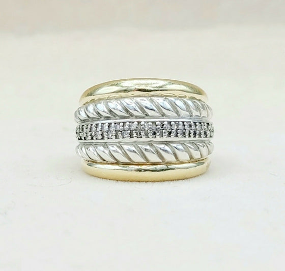 David Yurman Five Row Thoroughbred Diamond Ring With 18k Gold