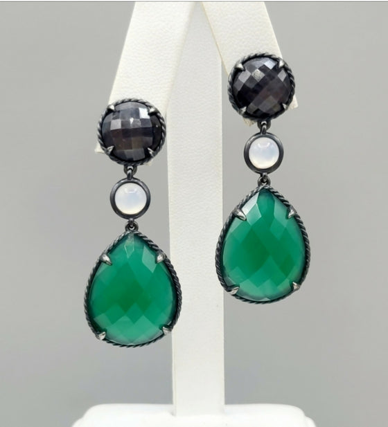 David Yurman Grisaille Triple Drop Earrings – Green Onyx