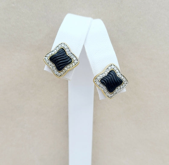 David Yurman Quatrefoil Carved Onyx Diamond Earrings Gold
