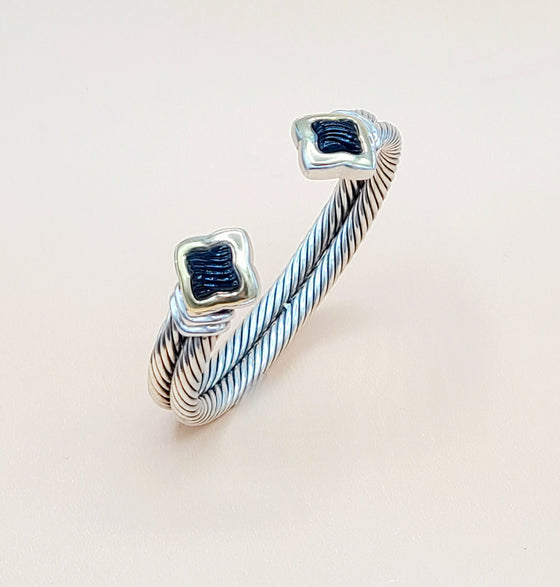 From the Quatrefoil® Collection, this rare vintage bracelet features a carved 10×10mm black onyx centerpiece framed by bold 16.5mm quatrefoil ornaments. Crafted from sterling silver with 18k gold accents, it is built on dual 5mm cables (10mm total) for strength and sophistication. Designed in a Medium size to fit wrists up to 6.5 inches, this bracelet is a highly collectible piece that blends Yurman’s sculptural artistry with timeless gemstone elegance.