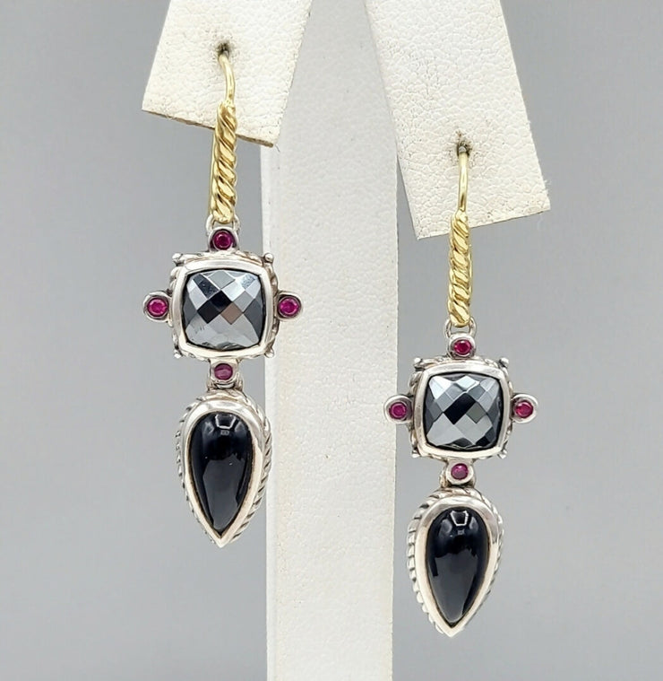 David Yurman Renaissance Drop Earrings Hematite, Onyx & Ruby