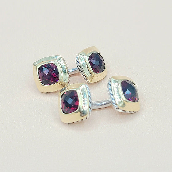 David Yurman Vintage Albion Silver Gold Garnet Cufflinks