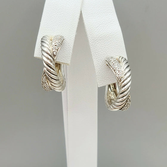 David Yurman Crossover Earrings Wide X Design with Diamonds
