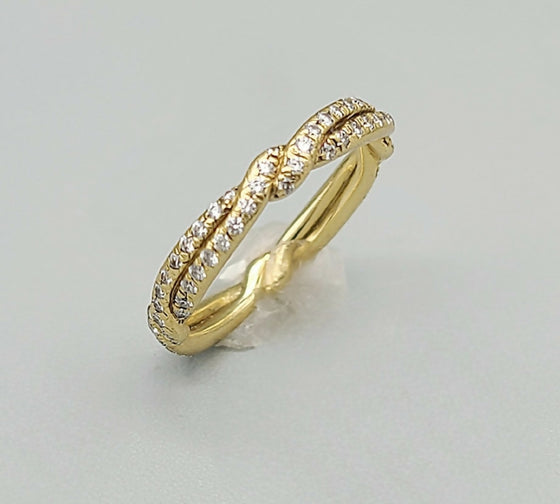 From the Wisteria Collection, this elegant band ring is crafted in 18k yellow gold and set with 0.50 carats of pavé diamonds. Measuring 3 mm wide and sized at 6, it carries the style number WR3040 88ADI. Extremely rare and highly collectible, this piece reflects David Yurman’s mastery in blending delicate proportions with luxurious brilliance.